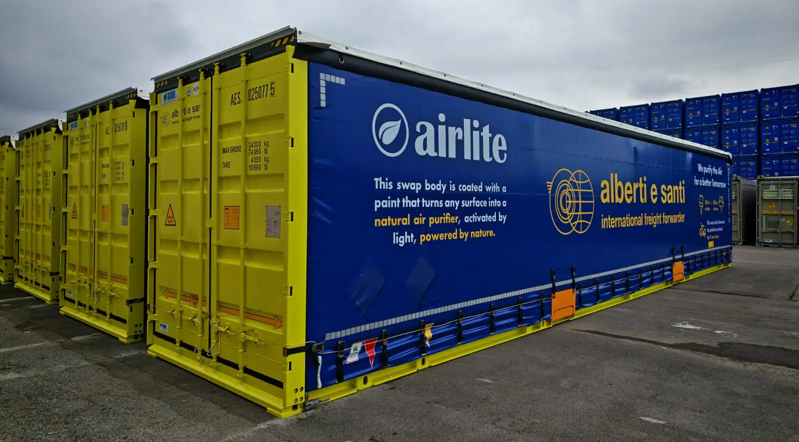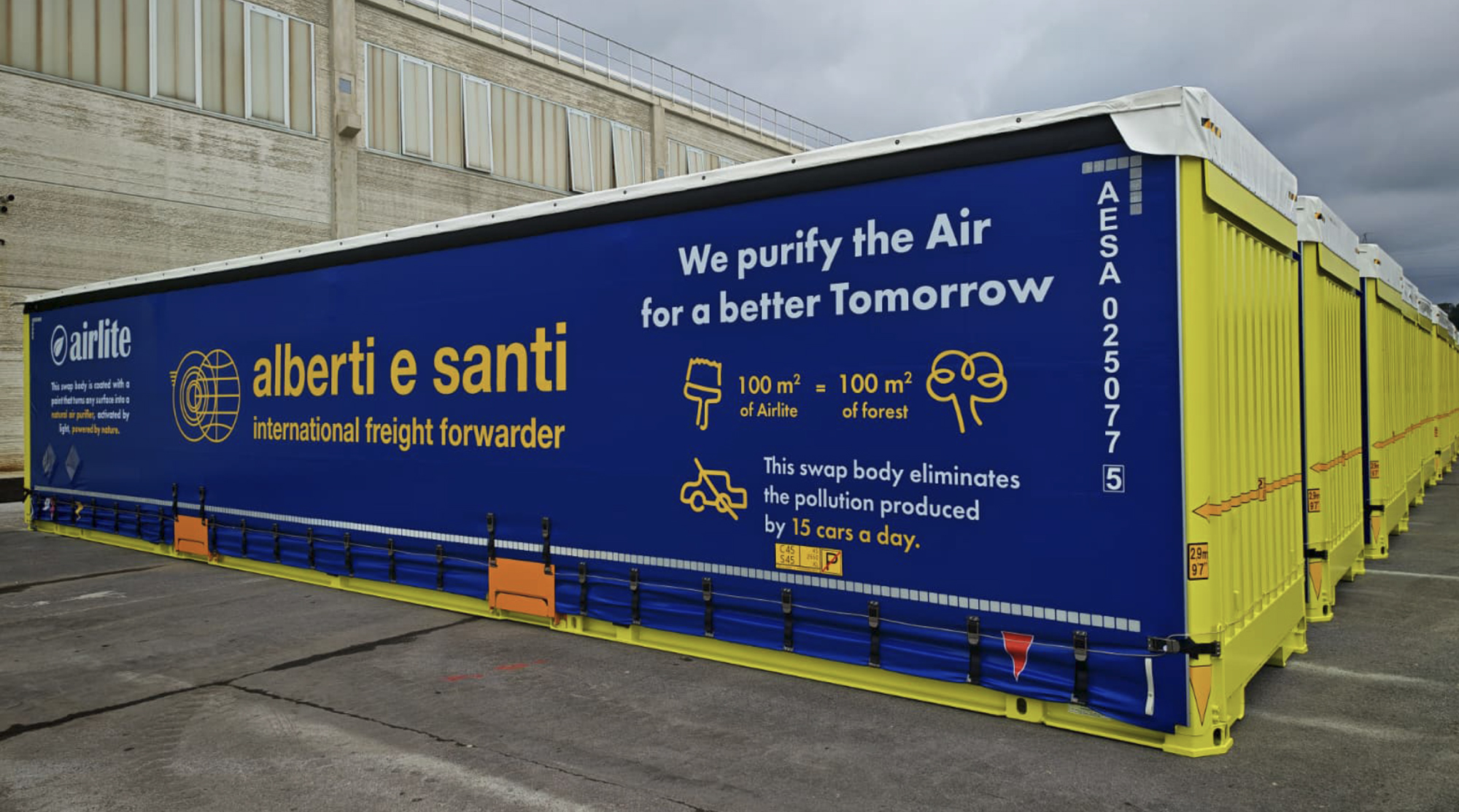 25 of these new swap bodies will be equipped with the revolutionary Airlite technology, an innovative treatment that transforms the curtain’s surface into a natural air purifier.